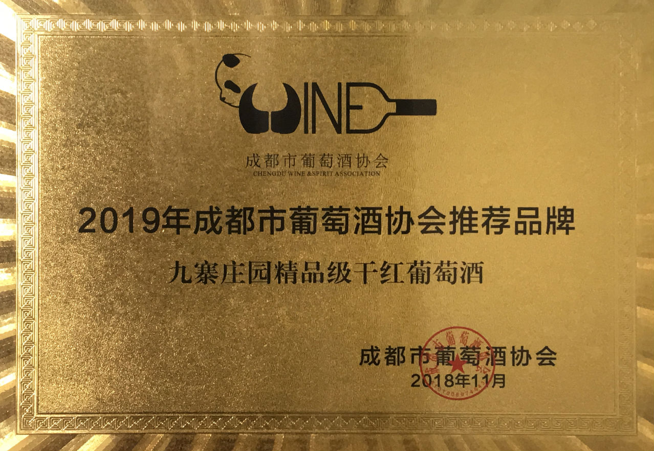 九寨莊園精品級干紅葡萄酒榮獲2019年成都葡萄酒協會推薦品品牌